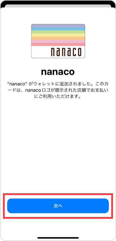 nanacoの新規発行が完了いたしました。これでnanacoのお支払いやチャージなどをご利用いただけます。
