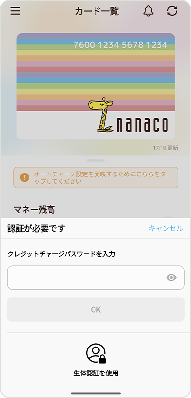 nanacoモバイル for Androidでオートチャージを利用する場合は、オートチャージ設定後に、オートチャージの設定反映が必要です。