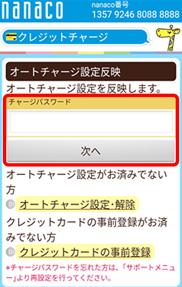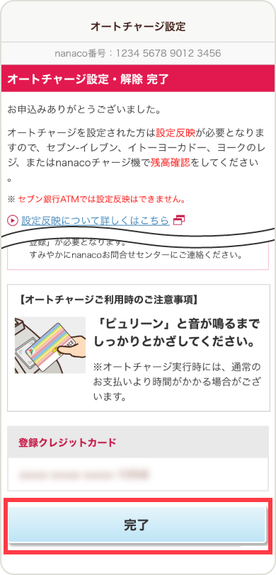 | オートチャージを実行するnanaco残高※1 | 1,000円〜10,000円 (1,000円単位) 15,000円、20,000円 |